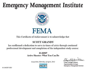 Scott's commitment to safety extends far beyond physical security. He has served as an EMT-Basic with a volunteer fire department, participated in a Community Emergency Response Team (CERT), and earned certification as a Stop the Bleed instructor through the American College of Surgeons. His keen sense of situational awareness, strengthened through specialized courses like Active Violence Emergency Response Training (AVERT) and Situational Awareness for Everyone (SAFE), makes him a valuable resource in uncertain times.